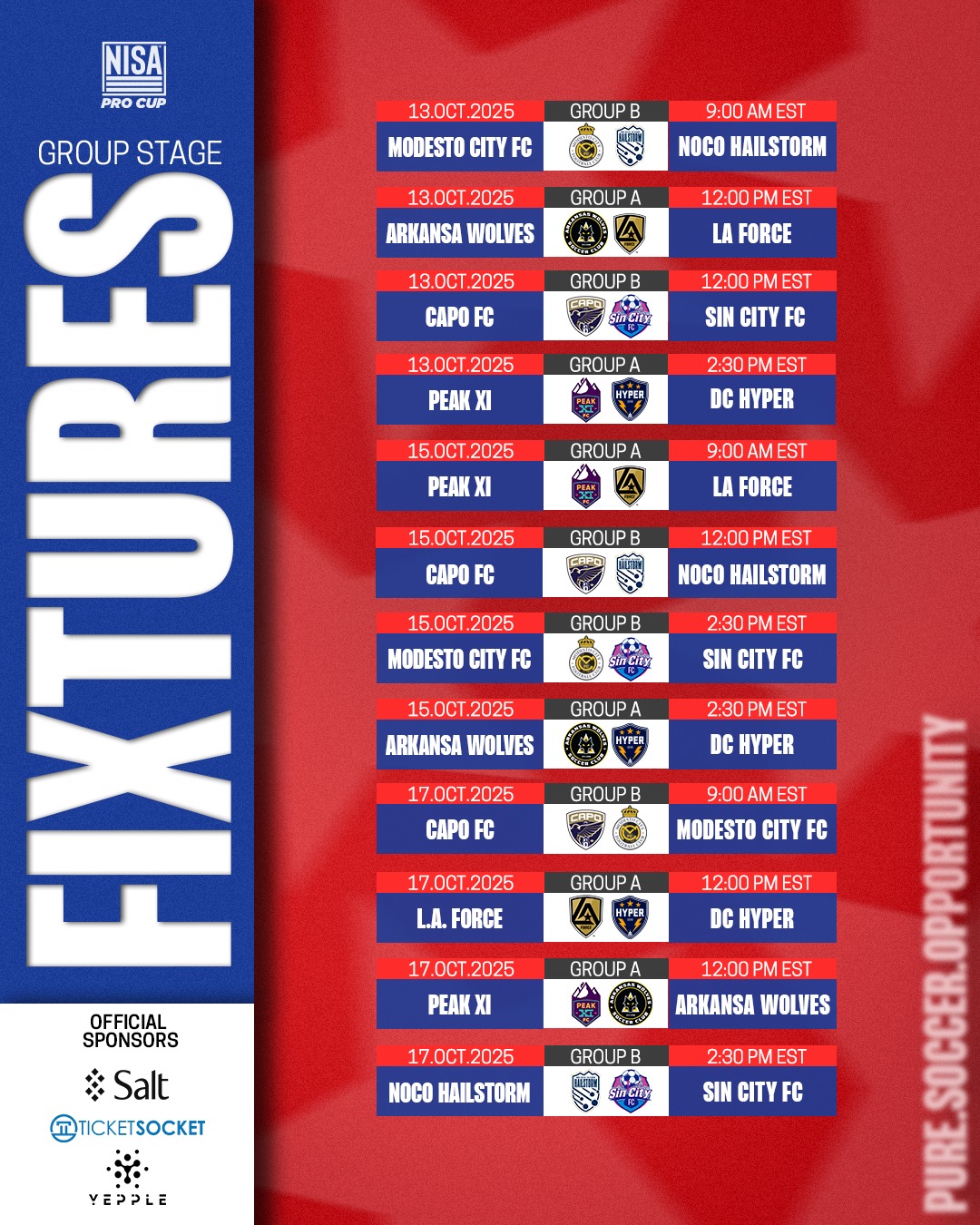 Here is a guide for all of the matches for the 2025 NISA Pro Cup: